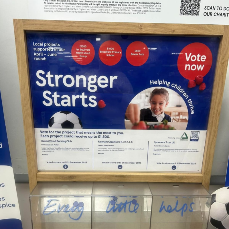 Sycamore Trust UK is one of the groups on the shortlist in Havering. Voting is open in all Tesco stores listed below from October 2025 until mid-January 2026. Customers will cast their vote using a blue token given to them at the check-out each time they shop at any of the following Tesco stores