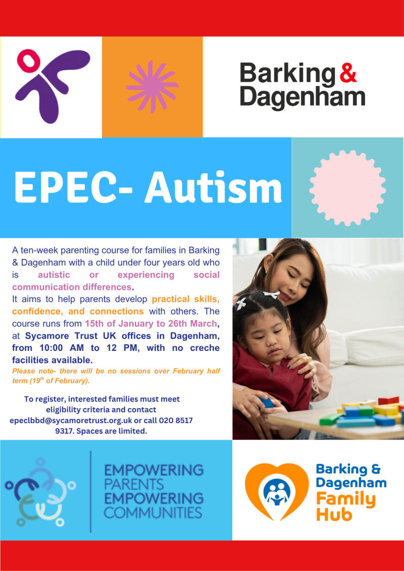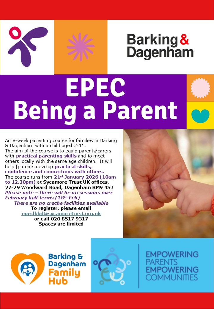 EPEC is available to Barking & Dagenham residents. EPEC - Being a Parent begins on 21st January 2026